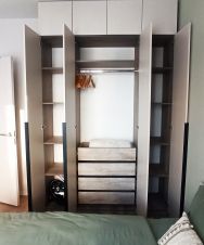 двуспальная кровать с ортопедическим матрасом Аскона, раскладной диван Аскона для гостей, большой гардеробный шкаф, комоды в обеих комнатах, вешалка в прихожей для вещей, которые надеты 1 раз и ждут решения, идут в стирку или еще раз оденутся. Есть стиральная машина, пылесос-малыш без мешка для пыли, вместительный холодильник, кухонный гарнитур, духовка, посудомойка, микроволновка, вытяжка с угольным фильтром и удобная глубокая раковина с дозатором моющего. В кухне есть посуда для готовки и сервировки. В прихожей просторно, интернет уже есть, 500 мБ/сек. На случай жары \ отключения батарей в каждой комнате кондиционер.