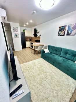 Варочная панель, духовой шкаф, микроволновая печь, вытяжка, чайник, стиральная машина, полотенцесушитель, холодильник, кондиционер, телевизор 43,робот-пылесос,