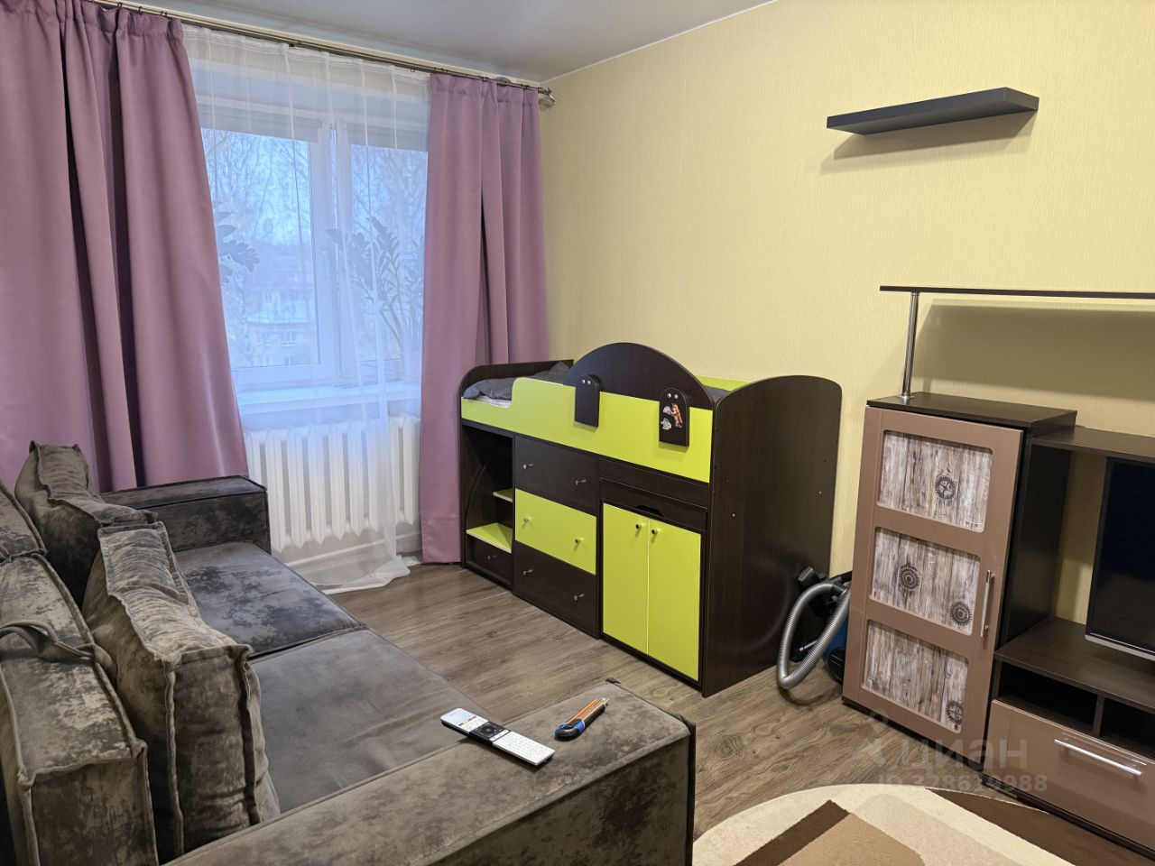 B кваpтиpе еcть все необходимоe: большой диван и кресло кровать,детская кровать,большой шкаф+ большая кладовка ,телевизор,холодильник ,стиральная машина.