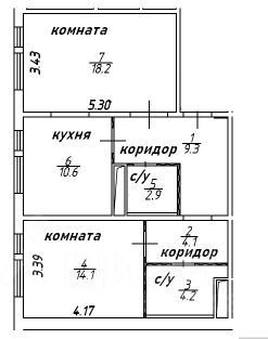 Квартира с удобной планировкой, расположена на 7 этаже из 14 эт секции дома. Комнаты 14,1 и 18,2кв.м. Кухня 10,6 кв.м. Два санузла совмещенных.