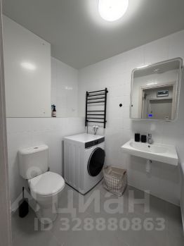 Ванная комната просторная с стиральной машиной, полотенцесушителем.