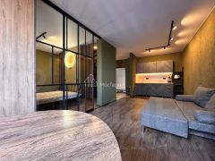 Современный дизайн: Квартира оформлена с использованием высококачественных материалов и стильной мебели, что создает атмосферу уюта и элегантности.