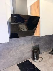 Новая техника: умный телевизор, стиральная машина, умный кондиционер, сенсорный чайник, духовка, индукционная варочная панель, No Frost-холодильник, сенсорная вытяжка.