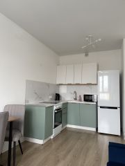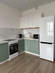 В квартире необходимая бытовая техника: холодильник, стиральная машина, кондиционер, чайник, электрическая плита, микроволновая печь.