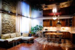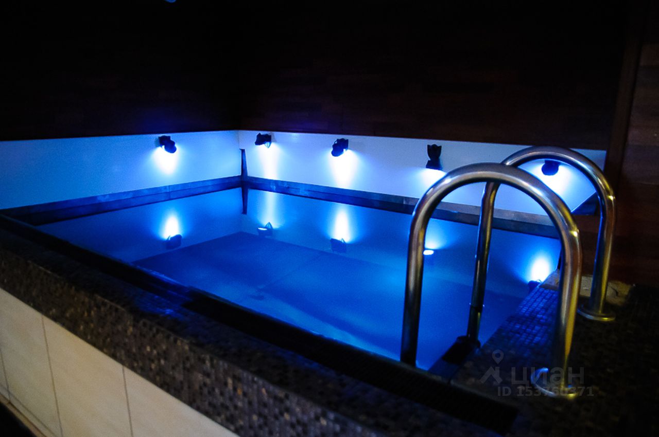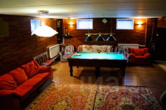 Цокольный этаж: большой зал 60 кв.м., просторная сауна, бассейн 3х4м, душевая кабина, бильярд, бар, кожаная мебель, теннисный стол. Первый этаж: студия 60 кв.м., кухня-столовая, санузел, спальня.