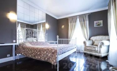 Коттедж рассчитан на семью с детьми и домашними животными. В нём два жилых этажа и цоколь. Общая площадь - 339 кв. метра. Здесь есть всё для комфортной жизни. На первом этаже уютная спальня и гостиная с камином. Высокие потолки (6,5 метров), большие окна, стильный интерьер в светлых тонах. На первом этаже также расположены кухня, туалет и ванная с душевой кабиной. На втором ещё одна спальня с дополнительной туалетной комнатой. А также детская, рабочий кабинет, с/узел, гардеробная.