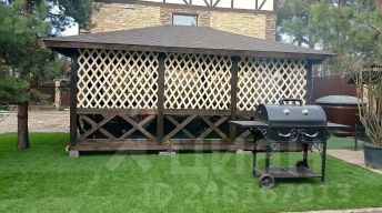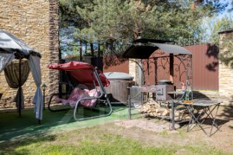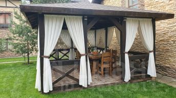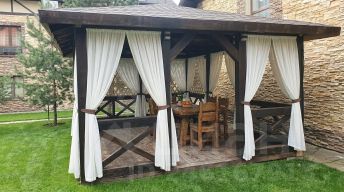 Рядом с домом установлен садовый шатёр с диванами на 10 человек, где можно спокойно покурить кальян и насладиться природной обстановкой.