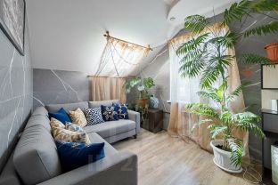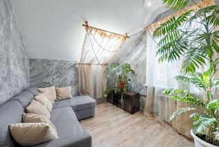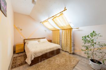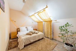 - На втором этаже — большая гостиная с угловой диванной зоной, домашним кинотеатром и ещё две спальни с двуспальными кроватями.