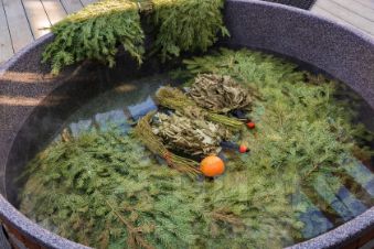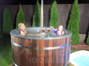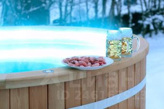 Особенностью становится наличие японской бочки-фурако с кедровой древесиной и подогревом воды до 40C, дополненной подсветкой и гидромассажем. Полностью топится дровами, создавая атмосферу расслабления и здоровья.