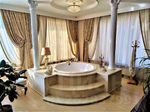 Гостиная, кухня-столовая, рабочий кабинет, 6 спален, 4 с/у, 2 гардеробные, кабинет - все обставлено дорогой мебелью, оснащено современным оборудованием. В цоколе расположены спортзал, погреб и комната для хранения инвентаря.