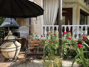 На территории 2 гаража (1 гараж в доме и отдельно стоящий гараж-мойка с комнатой для рабочего на втором этаже), большая парковка, просторная веранда и зона для барбекю.