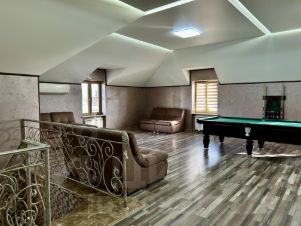 Мангальная зона; бильярд; аудиосистема; посуда; постельное и пледы; комплект полотенец; резиновые тапочки; гель для душа и мыло для рук; туалетная бумага; стиральная машина с сушкой.