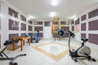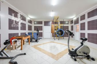 Цокольный этаж: холл, постирочная, помещение свободного назначения, спортзал, сауна, джакузи, душевая, комната отдыха с санузлом, кладовая.