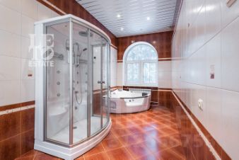 Сердцем основного дома является невероятно просторная и светлая гостиная-столовая с камином и выходом на террасу, а также спа-зона с джакузи, сауной и спортзалом на цокольном этаже. На третьем этаже расположена удобная хобби-комната для работы или творчества. На первом этаже предусмотрен гараж на 3 машиноместа с организованным водостоком.