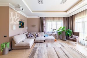Внутри выполнена дорогая дизайнерская отделка с использованием высококачественных материалов. Установлена вся необходимая мебель и бытовая техника от ведущих мировых производителей.