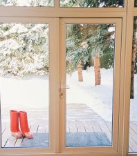 В отдельной панорамной столовой с кухней и камином двухспальный диван 150х230, туалет с раковиной, выход на террасу