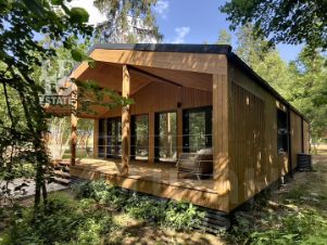 На ухоженном лесном участке расположился одноэтажный дом для семьи или небольшой компании до 4 человек. Дом абсолютно новый, обустроен всей необходимой мебелью, техникой и предметами интерьера. Возле террасы расположен гриль-мангал.