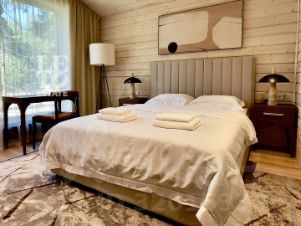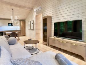 На ухоженном лесном участке расположился одноэтажный дом для семьи или небольшой компании до 4 человек. Дом абсолютно новый, обустроен всей необходимой мебелью, техникой и предметами интерьера. Возле террасы расположен гриль-мангал.