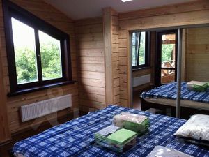 дом полностью оборудован бытовой техникой, мебелью из массива гевеи и дуба, стиральная и посудомоечная машина, посудой, плазменная панель с НТВ + и всем необходимым для полноценного отдыха спальных мест на 8 человек + раскладушки 2 шт+ детская кроватка.