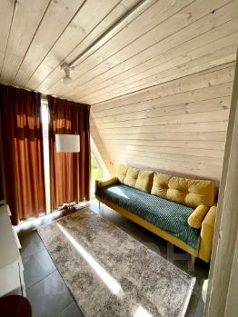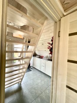 В доме есть всё необходимое для комфортного проживания на двоих. На первом этаже: туалет, душ, отдельная комната с ТВ и диваном, гостиная и кухня совмещены. На мансардном этаже большая двух спальная кровать. Имеется уличная терасса и мангал.