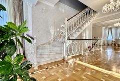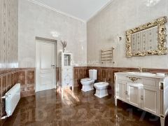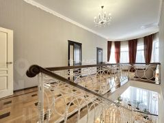 На втором этаже расположена спальня хозяев дома со своей ванной и комнатой и гардеробом, здесь же расположены 3 независимые спальни с прекрасными видами из окон, просторная ванная комната с ванной у окна, полукруглая комната-кабинет.