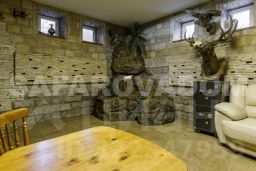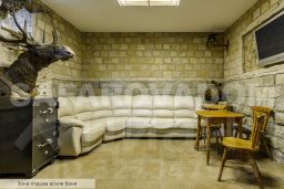 Цокольный этаж: гостиная, санузел, настольный теннис, бильярд, баня, тренажерный зал.