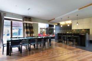 -1 этаж: прихожая, гардеробная, гостевой санузел, гостиная со вторым светом и камином, кухня-столовая, кабинет, SPA-зона: бассейн, сауна, хаммам, санузел