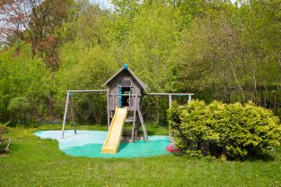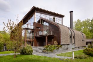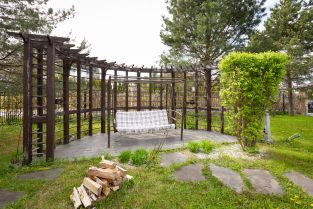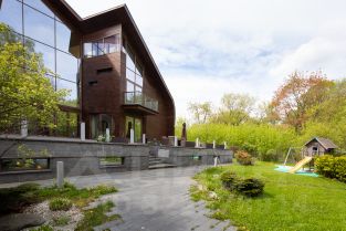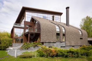 Коттедж расположен на участке 30 соток в элитном посёлке Лазурный берег, на берегу Пестовского водохранилища и канала имени Москвы.