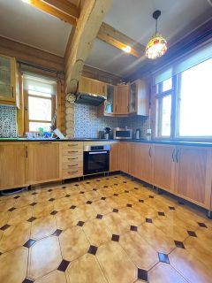 На 1 этаже бревенчатой бани расположена комната отдыха, кухня, сама баня, санузел и душ.