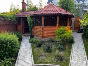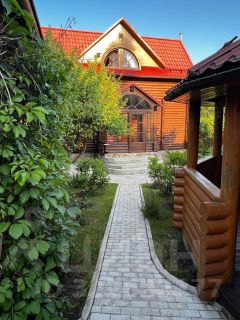 Сдаю в аренду уютную усадьбу с русским бревенчатым домом, баней, бассейном, беседкой с летней кухней, гаражом, парковкой и хозяйственным домиком для садовой утвари.