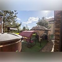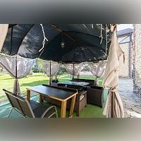 Есть еще садовый шатер на 10 человек - зона диванного отдыха либо кальянная на улице.