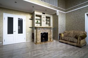 На первом этаже  спальня, гостиная с камином и вторым светом (потолки 6,5 метров), кухня, санузел с душевой кабиной.