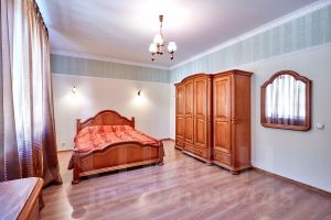 В доме имеются все удобства: настольный теннис, бильярд, спутниковое ТВ, караоке, Wi-Fi, музыка, на первом этаже отапливаемые полы.