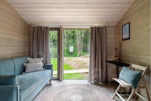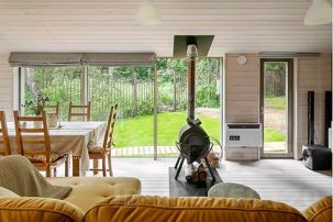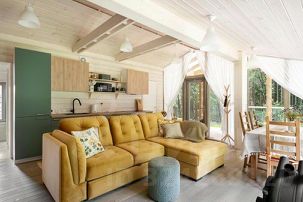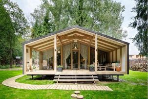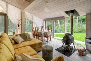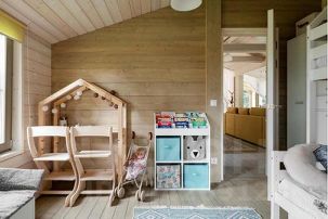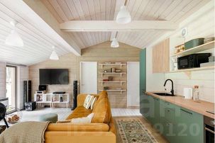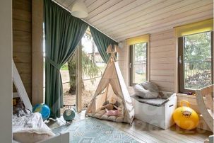 Дом 65 кв.м+терраса 18 кв.м на участке 23 сотки, 2 спальни, гостиная зона с кухней; для маленьких гостей есть оборудованная детская комната - 3ья спальня, а во дворе - своя детская площадка.