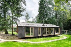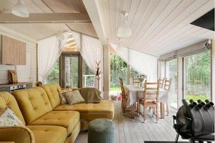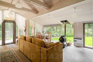 Дом окружен с двух сторон лесом, видом которого можно наслаждаться прямо из гостиной, т.к. в доме имеются панорамные окна, чтобы Вы могли почувствовать единение с природой, набраться сил и вдохновиться новыми идеями.
