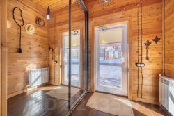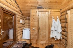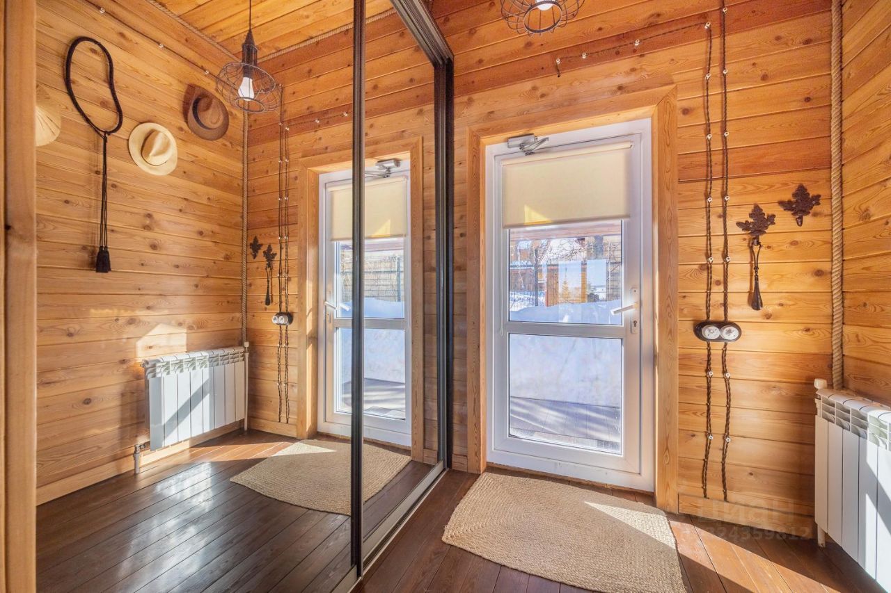 Уютный деревянный дом с камином и панорамными окнами — идеален для отдыха в любое время года!