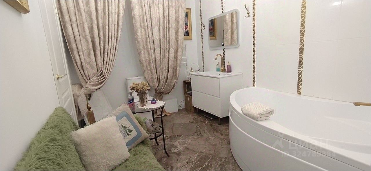 Выполнен дизайнерский ремонт, сделан тёплый пол, общая площадь составляет 107.4 кв.м.