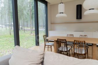 Сдаётся в долгосрочную аренду (от 12 месяцев) современный дом в скандинавском стиле площадью 203 м² в клубном посёлке Среди Своих. Это камерное коммьюнити всего из 30 домов на 10 гектарах леса, созданное выходцами из Яндекса для себя и друзей.