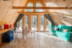 - 4 спальных места: 1 кровать 160x220 см на втором этаже, 1 диван-кровать 140x200 см на первом этаже;