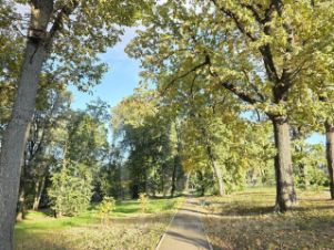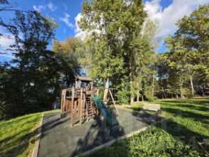 Огороженная зеленая территория. Есть парковочное место. Рядом лесная зона, удобная для прогулок. Соседи спокойные, доброжелательные.