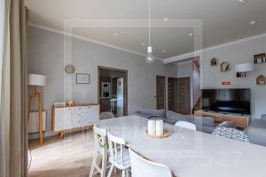 В доме: С мебелью, Парковка, Посудомоечная машина, Стиральная машина, Душевая кабина, Сауна, Кондиционер, Охрана, Интернет, Терраса, Можно с детьми, Газовая колонка, Изолированная кухня, Интерьер в современном стиле, Гардеробная комната, Мебель в комнатах, Телефон, Телевизор, Мебель на кухне