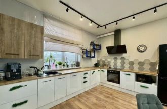 В доме удобная планировка, просторная кухня-гостиная с выходом на террасу, отдельная гостевая спальня, санузел с душевой. На втором этаже просторная спальня с гардеробом и выходом на балкон, оборудованная детская с двухспальной кроватью и ванная комната.