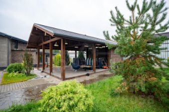 УЧАСТОК: 27 соток. Ландшафтный дизайн. Ухоженная зеленая территория. Высажены деревья, кустарники и цветы. Дорожки облагорожены. Мангальная зона. Просторная беседка до 30 персон с удобными диванчиками и столом. Парковка на 7 автомобилей.