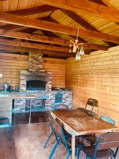 В доме 2 входа. Кирпичный гараж на 3 машины. Помещение под мастерскую. Автоматические ворота на территорию и в гаражи. С 2 сторон дома большая терраса. На участке: прогулочные дорожки, мощённые плиткой. Летний домик из соснового бруса (30 м2) с каменным мангалом, печкой, столом. Газон, плодовые деревья и кустарники. Система очистки воды, газ, электричество. Соседи спокойные, не шумные. Вдоль другой стены дорога в лес.