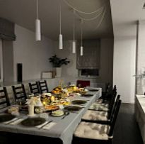 • Кухня-остров (20 м²): Полностью оборудованная кухня с техникой и посудой для комфортного приготовления еды. Дополнительные холодильники в цокольном этаже обеспечат хранение продуктов и напитков.