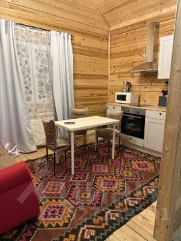 В домике есть кухонная зона, плита, духовка, электрочайник, микроволновая печь, интернет, телевизор, фен.
