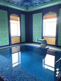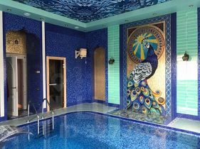 Архитектура дома поражает воображение: использование огромного количества натурального камня, многолетняя кропотливая работа мастеров над деталями и уникальная ручная лепка из гипса создают атмосферу дворцового величия. Особую художественную ценность представляют мозаики ручной работы, украшающие интерьеры. Высочайшие потолки и просторные залы для приема гостей наполняют пространство светом и воздухом, превращая любое событие в торжество мирового уровня.