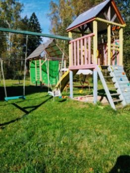 Большой участок, детская игровая площадка, мангал.