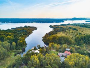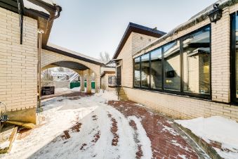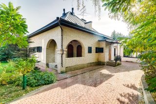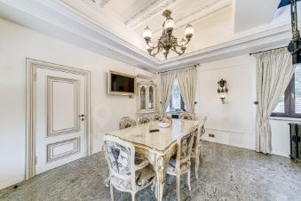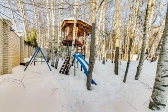 Участок площадью 20 соток украшен вековыми елями и березами, создающими ощущение единения с природой. Здесь же находится отдельно стоящий бассейн, гостевой дом с комнатой отдыха, бильярдом и сауной, комната для персонала, навес для двух машин и эллинг для лодки.