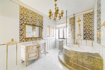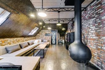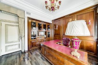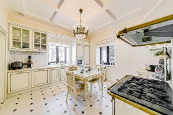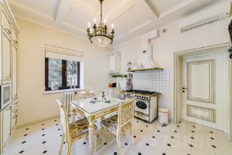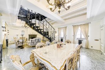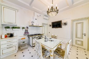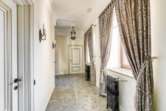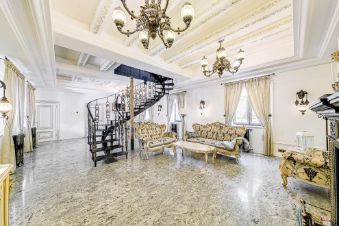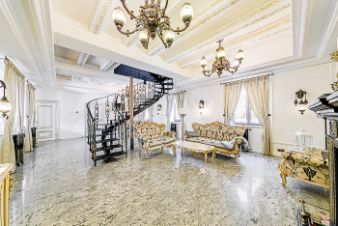 Просторные комнаты, высокие потолки, элегантная чугунная лестница. Интерьер выполнен в элегантном стиле с использованием дорогих материалов.